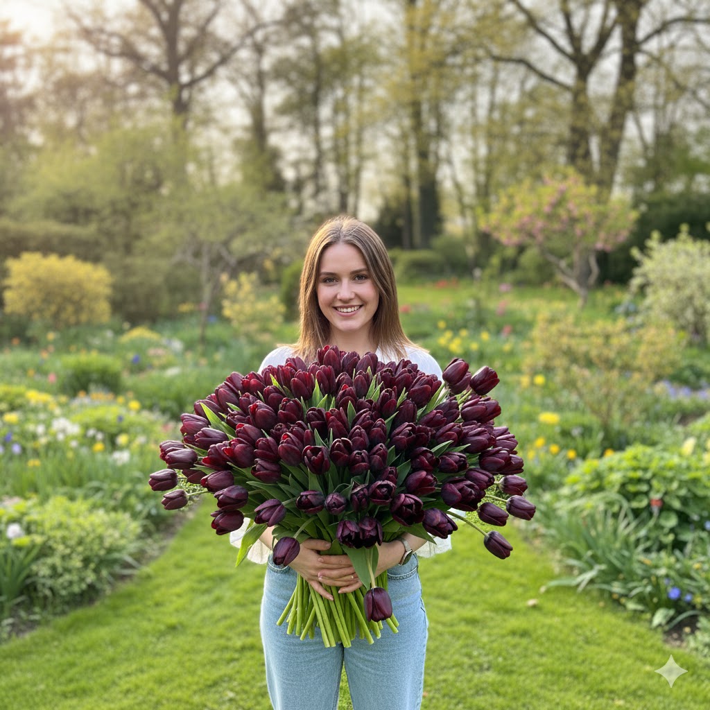 Весняна посадка дозволяє контролювати умови росту з перших днів: достатньо сонця, пухкий ґрунт і помірний полив — і рослини активно розвиваються. Тюльпани Queen of Night формують елегантні темні бутони з глибоким, насиченим відтінком, які виглядають особливо ефектно на тлі свіжої весняної зелені.