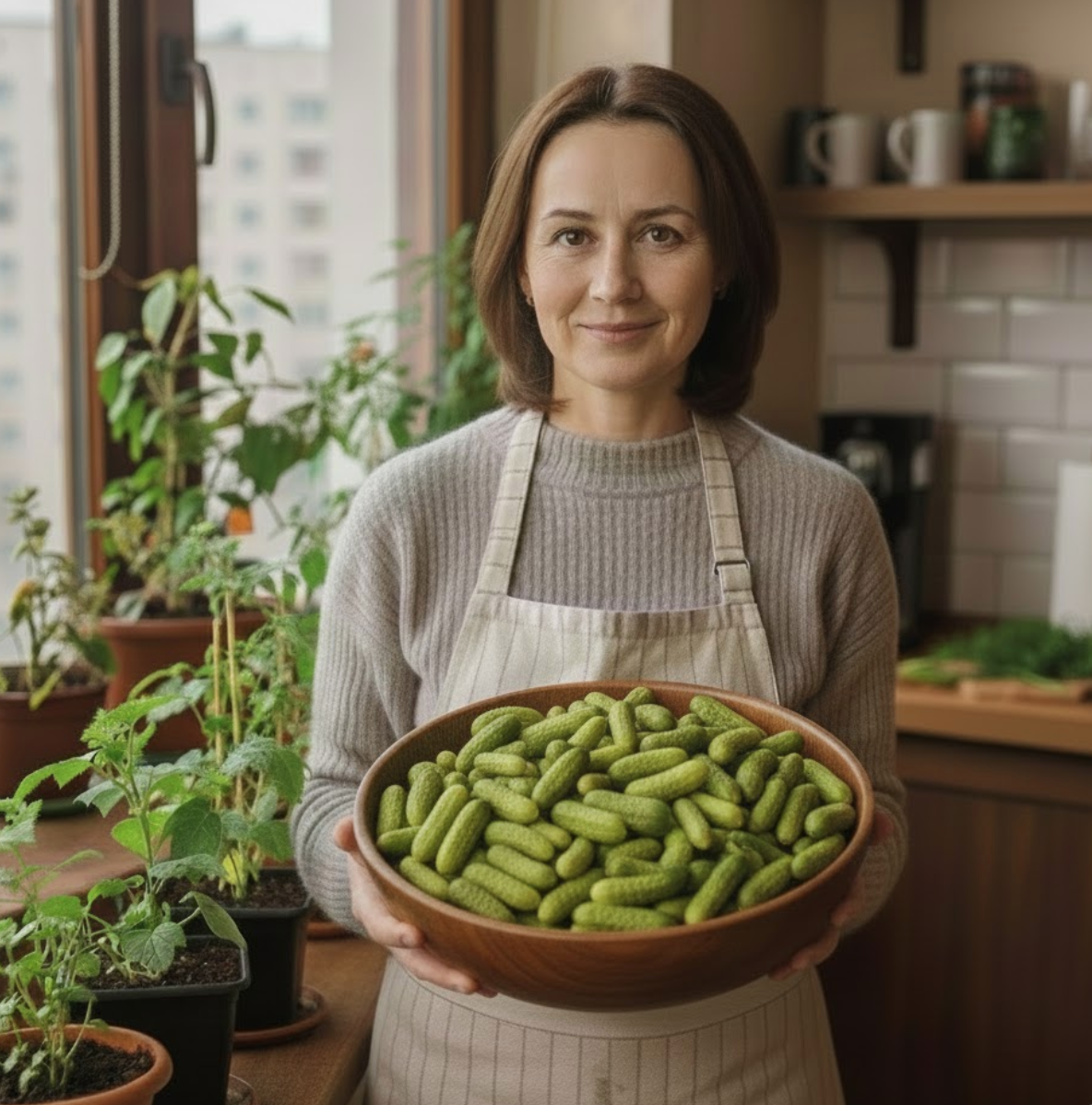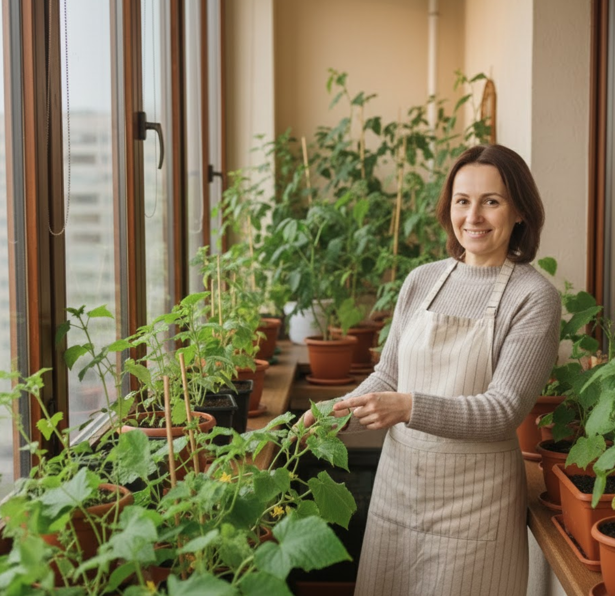 Огірок «Галілео»: киянка перетворила підвіконня на цілорічний міні-город і збирає 10 врожаїв хрустких корнішонів на рік